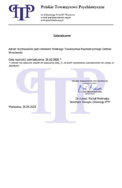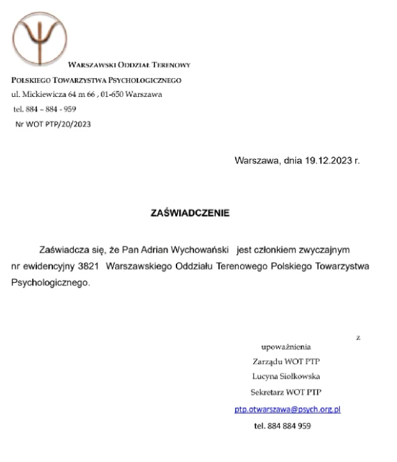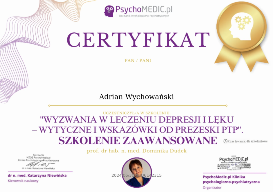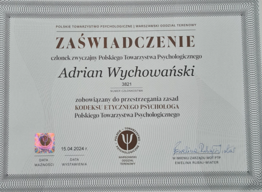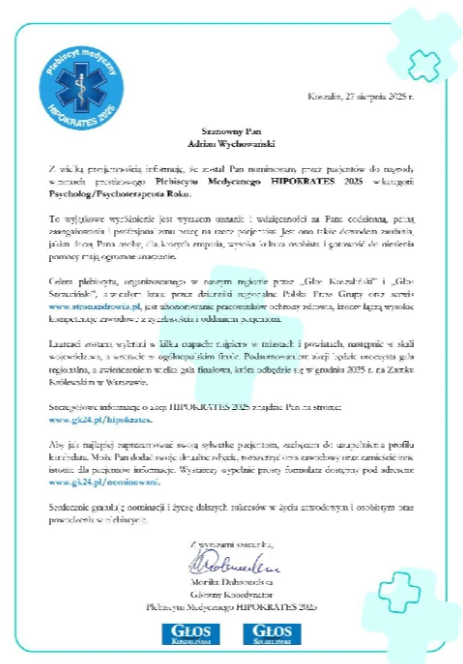 - LAUREAT PLEBISCYTU ORŁY MEDYCYNY 2024 - Gabinet Psychologiczny - Adrian Wychowański