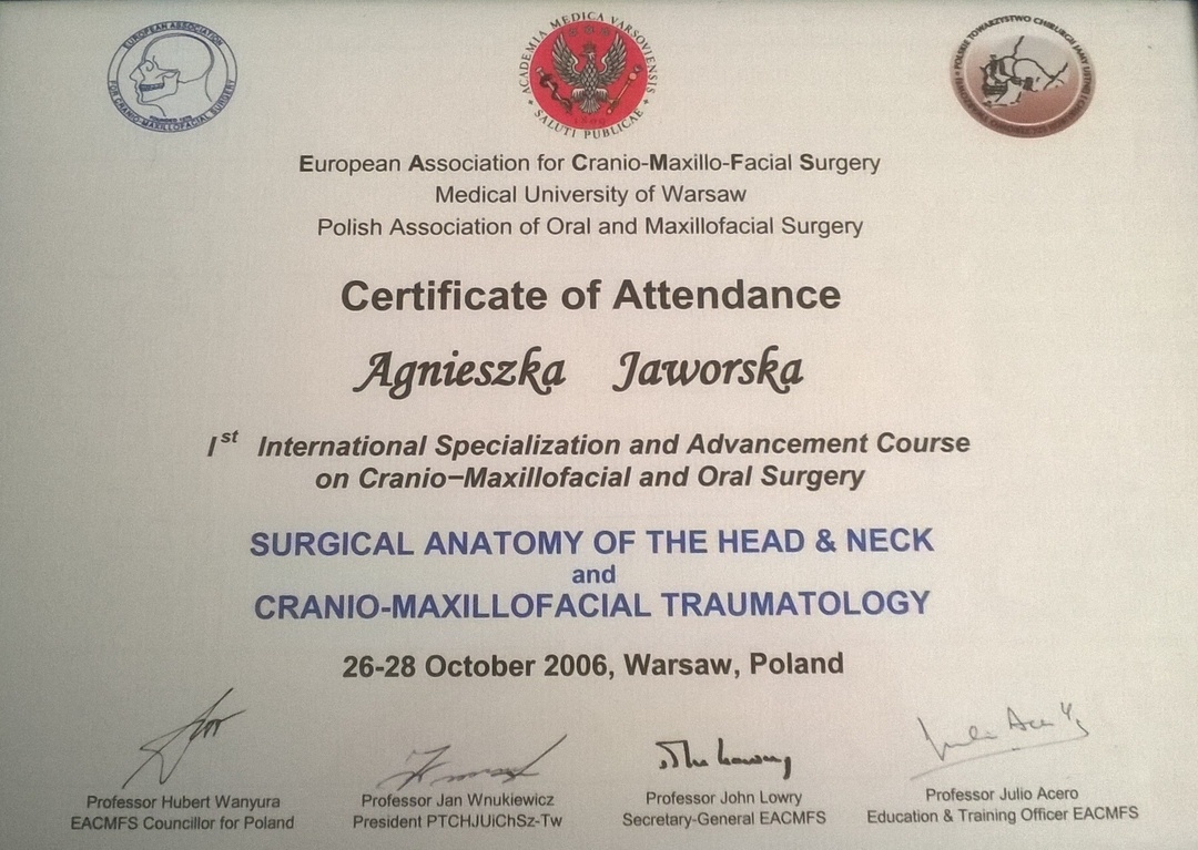- artykuły w European Journal of Maxillo-facial Surgery I Czasopiśmie Stomatologicznym, lata 1983 - 1987