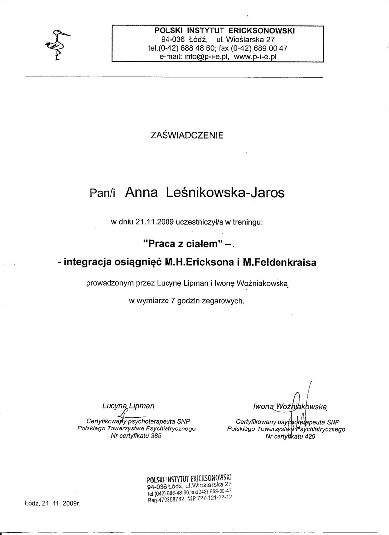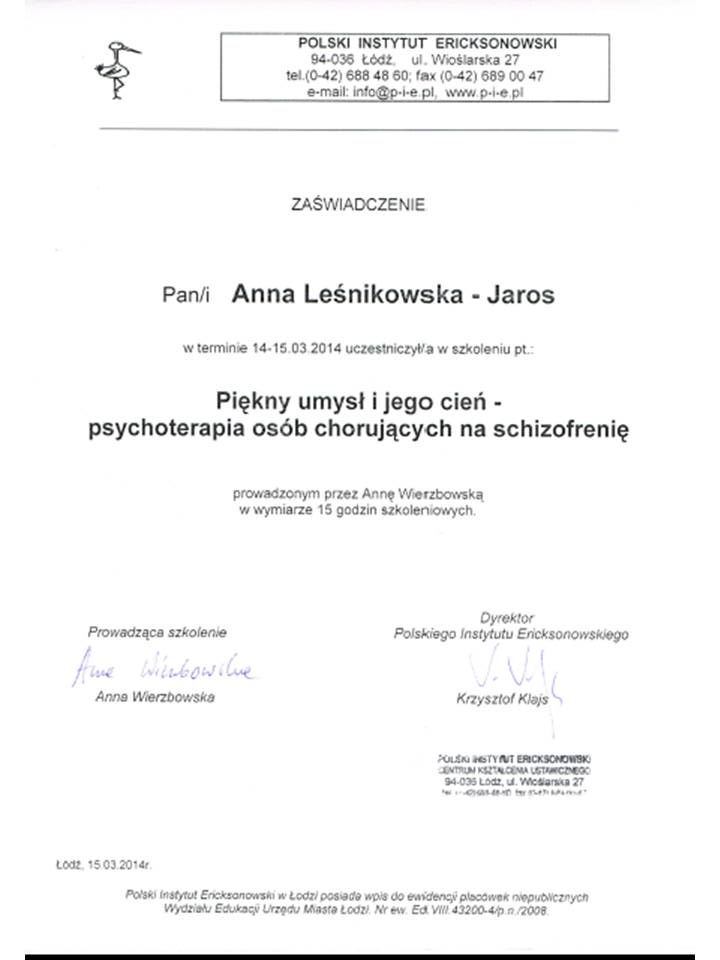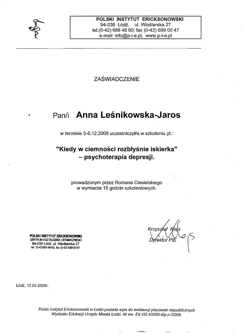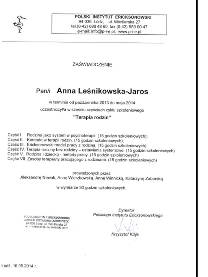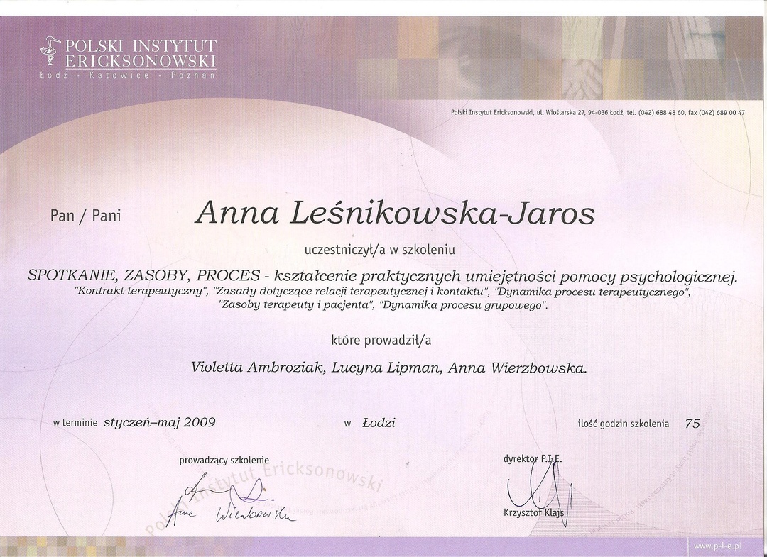 Pracuję przede wszystkim w nurcie ericsonowskim oraz w nurcie Racjonalnej Terapii Zachowań.