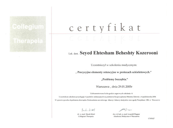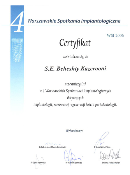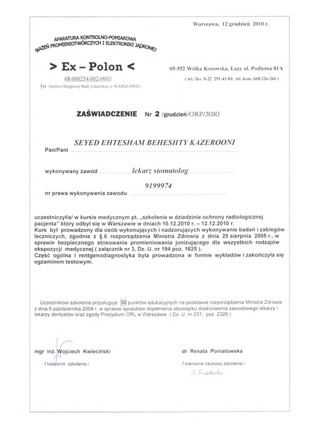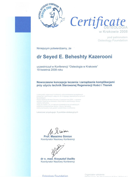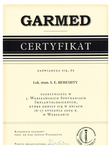 Korzystam również z doskonalących szkoleń i kursów z zakresu protetyki, implantologii, stomatologii estetycznej i ogólnej.