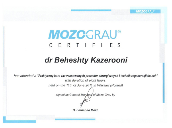 Lekarz z pasją! Nie ma dla niego problemów "nie do rozwiązania". Tam gdzie inni się poddają wkracza dr Kazerooni... Nigdy żadnej fuszerki, do tego bardzo dba o klienta i jest przy tym troskliwy. Krótko - godny polecenia! :) Mariusz D.