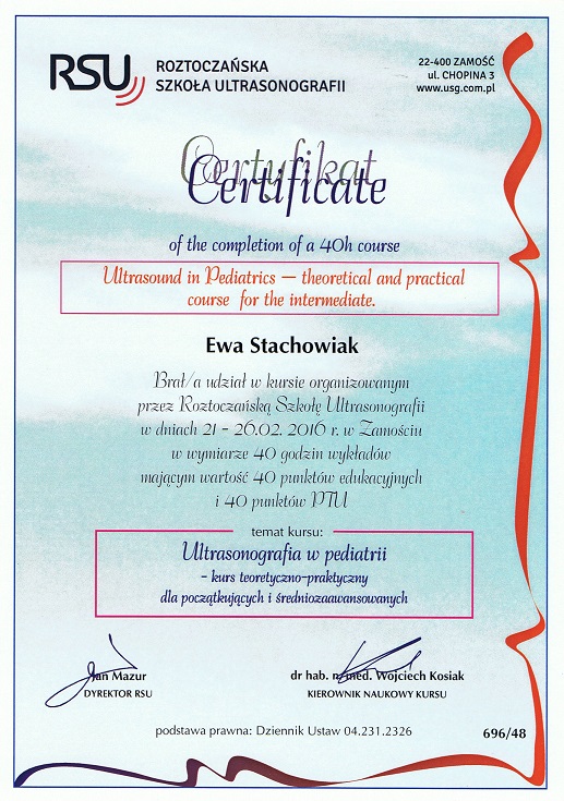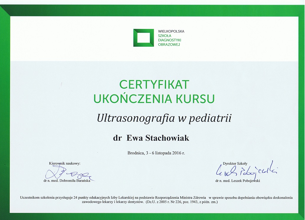 - Oferuje również diagnostykę USG w zakresie pediatrycznym