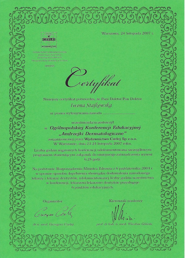 Jestem doświadczonym lekarzem medycyny. Posiadam I i II stopień specjalizacji z dermatologii i wenerologii oraz członkiem Stowarzyszenia Lekarzy Dermatologów Estetycznych. …