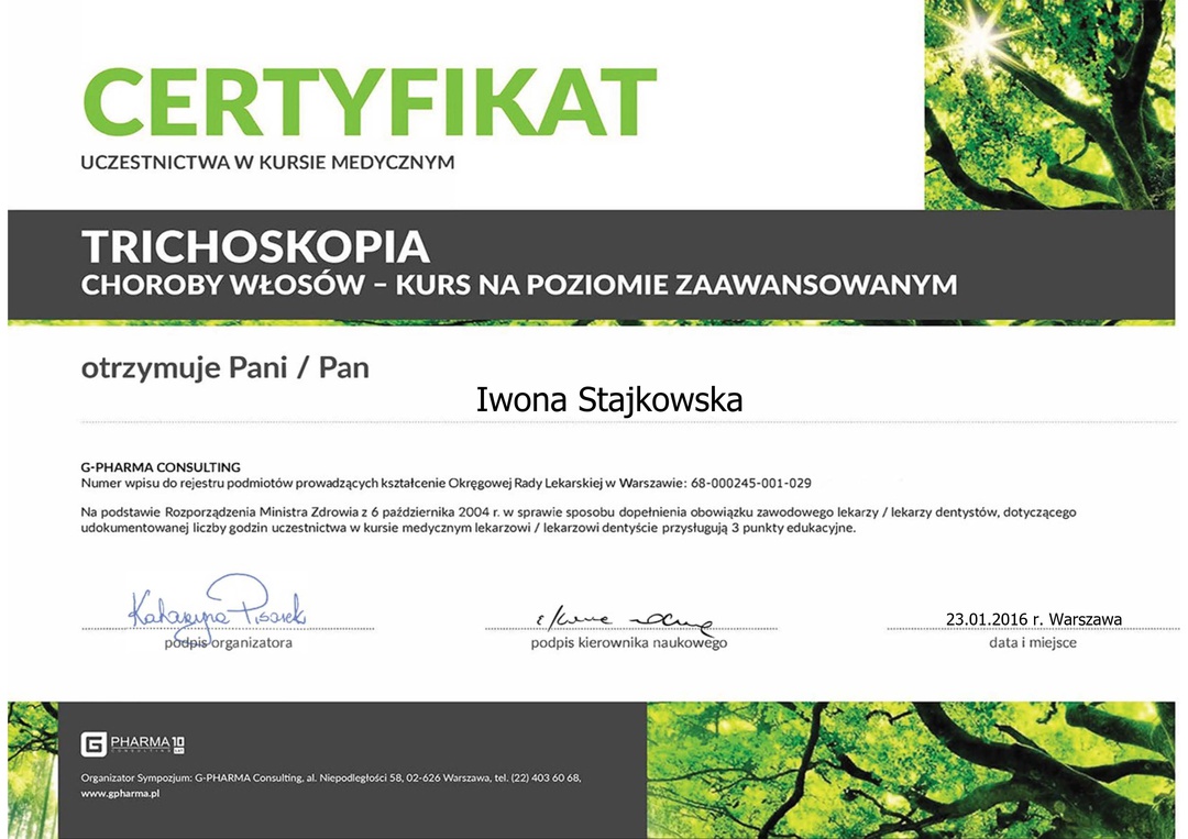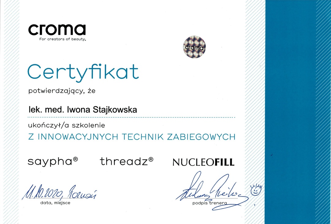 Jestem bardzo zadowolona z wizyt u p. doktor Stajkowskiej. Jest skrupulatna, profesjonalna,niezwykle uprzejma i perfekcyjna. Dokładnie tłumaczy na czym polegają zabiegi. Wstrzykuje mi botoks, kw.hialuronowy,poddałam się zabiegowi Sculptra, efekty są fenomenalne. Dzięki pani doktor czuję się,a przede wszystkim wyglądam młodziej. Zgadzam się z poprzednią opinią,że pani Stajkowska to wirtuoz dermatologii estetycznej.