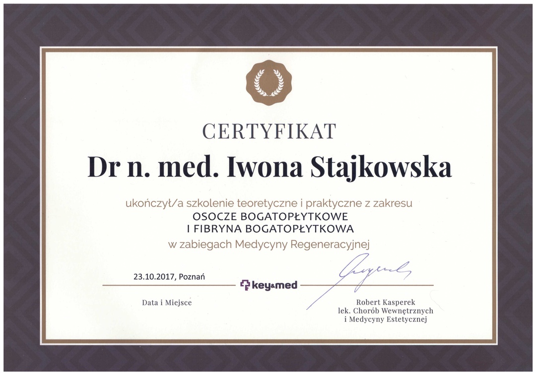 Jestem pacjentką pani dr Stajkowskiej od kilku lat.Korzystam z zabiegów dermatologii estetycznej i śmiem twierdzić, że Pani Dr jest mistrzem w swym fachu. Profesjonalne, rzetelne podejście do pacjenta stawia na 1 miejscu, jest przy tym miła i uprzejma, czuję się "w rękach" Pani Dr bezpiecznie, a sądzę,że to niezwykle istotne. Polecam serdecznie.