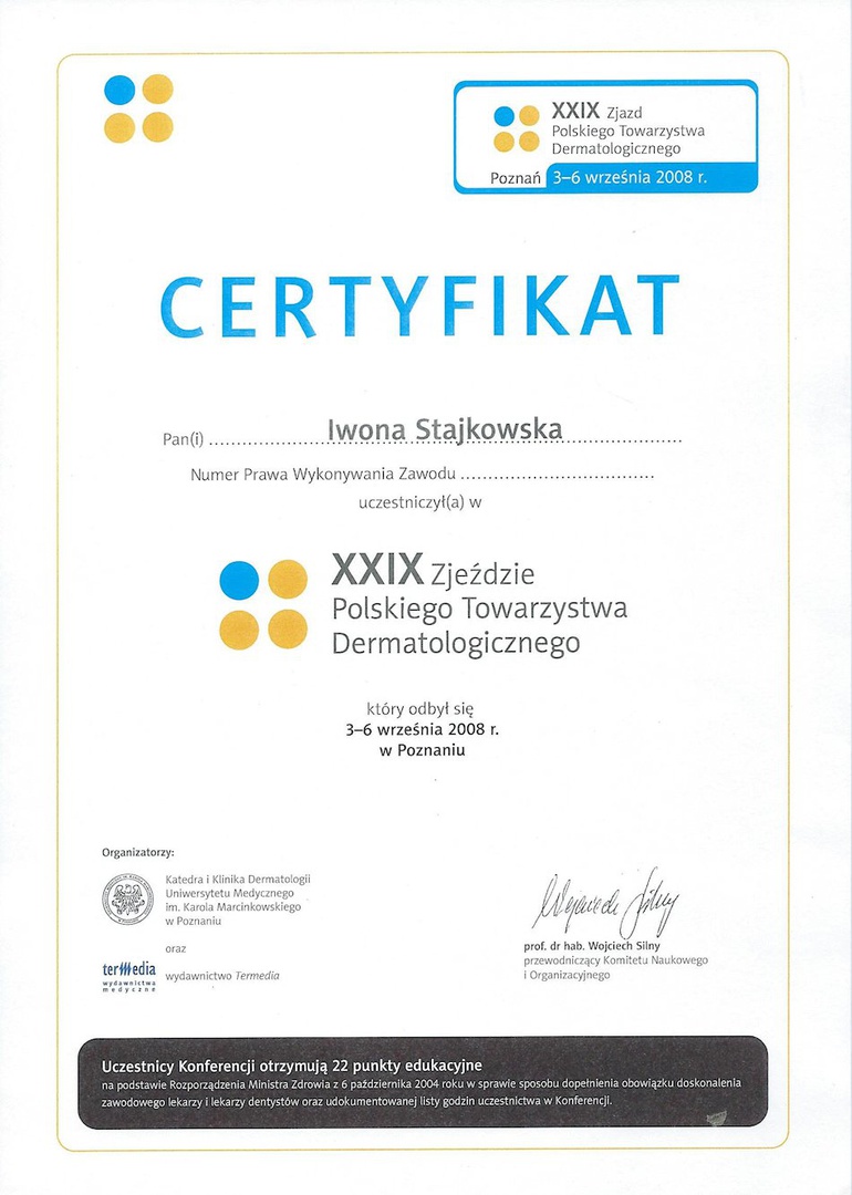 Jestem doświadczonym lekarzem medycyny. Posiadam I i II stopień specjalizacji z dermatologii i wenerologii oraz członkiem Stowarzyszenia Lekarzy Dermatologów Estetycznych. Specjalizuję się w dermatologii, dermatologii estetycznej i wideodermatoskopowym badaniu znamion. Jako dermatolog z wieloletnim doświadczeniem wiem jak ważna jest wiedza i umiejętność z tego powodu bezustannie doskonalę swoje umiejętności biorąc udział w licznych szkoleniach i warsztatach. W zabiegach medycyny estetycznej stosuję tylko najlepsze preparaty i najnowocześniejsze urządzenia medyczne. Jako nieliczni w kraju w gabinecie służymy badaniami unikalnymi aparatami, takimi jak wideodermatoskop z opcją mapowania znamion całego ciała - umawiając się na wizytę dotyczącą badań znamion proszę o zaznaczenie tego w uwagach podczas rezerwacji terminu. Do dyspozycji pacjentów mamy lasery CO2, frakcyjny, VPL RF, urządzenie do krioterapii, automat do diagnozowania stanu skóry Adonia, dermatoskop z kamerą HD zapewniający badanie znamion, lancetron. Jako jedyni w Poznaniu i Wielkopolsce oferujemy też skuteczną i co najważniejsze o zminimalizowanej odczuwalności depilację najnowszym laserem diodowym. Zapraszam do gabinetu Mediwa Clinic na badania z zakresu dermatologii, zabiegi medycyny estetycznej, badanie znamion, badanie trichoskopowe dedykowanym skanerem HD i leczenie problemów z wypadaniem włosów oraz medyczną depilację. Zapraszam na nasze strony internetowe gabinetów