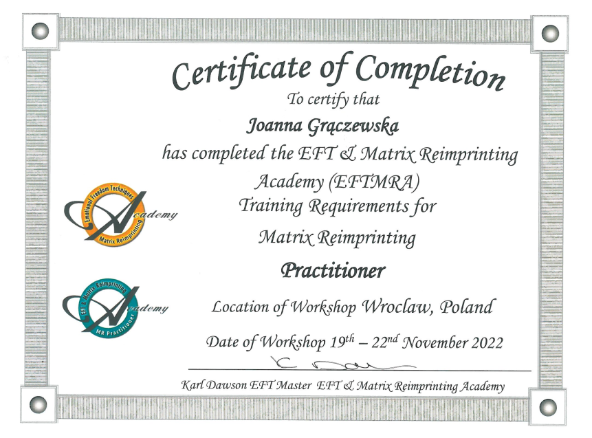 W swojej pracy łączę klasyczną dietetykę z elementami naturoterapii oraz technikami EFT, które wspierają pracę z emocjami, stresem i głęboko zakorzenionymi przekonaniami na temat jedzenia i ciała.