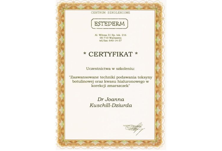 Witam, do dr.Joanny trafiłam z polecenia mojej córki, która powiększała sobie u niej usta. Muszę przyznać, że bardzo ładny i naturalny efekt uzyskały. No ja z racji wieku musiałam więcej wypełnić swoją skórę, która wraz z wiekiem straciła na swojej objętości. Wyglądam bardzo dobrze, trochę ta przyjemność mnie kosztowała, ale nic nie zastąpi nam dobrego świeżego wyglądu a tym samym wyśmienitego samopoczucia. Lekarz którego szczerze polecam. Dziękuje