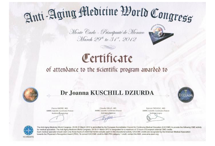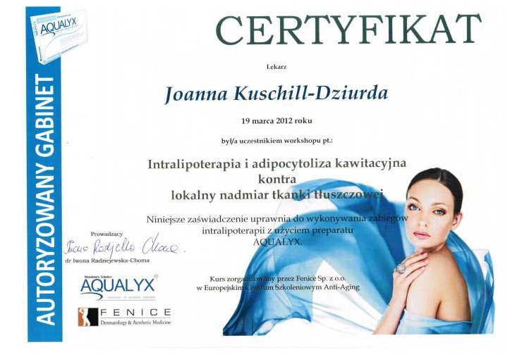 Dyplom lekarza medycyny uzyskała na Wydziale Lekarskim Collegium Medicum Uniwersytetu Jagiellońskiego w Krakowie. Przebyła szereg kursów i szkoleń z dziedziny medycyny estetycznej i anti-aging w kraju i za granicą, co pozwala jej wprawnie stosować techniki upiększania twarzy i ciała (odbudowa objetości twarzy przy użyciu kwasu polimlekowego (Sculptra) i hydroksyapatytu wapnia (Radiesse), iniekcje toksyny botulinowej w leczeniu zmarszczek mimicznych i nadpotliwości, wypełniacze z kwasu hialuronowego (nici hialuronowe, miękki lifting, likwidacja zmarszczek, bruzd, wypełnianie ust i policzków), mezoterapia, lipoliza, skleroterapia, peelingi medyczne, nici liftingujące typu Silhoette Soft i PDO, przeszczepy tłuszczu, zabiegi osoczem bogatopłytkowym, zabiegi laserowe i wiele innych. Celem doskonalenia umiejętności wśród najlepszych przebyła liczne szkolenia zagraniczne m.in. w roku 2007 szkolenie u Dr Elisabeth Dancey w Klinice w Londynie oraz szkolenie u dr Sandrine Sebban w 2013 roku w Paryżu. Ponadto stale podnosi swoje kwalifikacje zawodowe poprzez uczestnictwo w kursach, kongresach, szkoleniach i konferencjach zarówno w kraju, jak i za granicą.