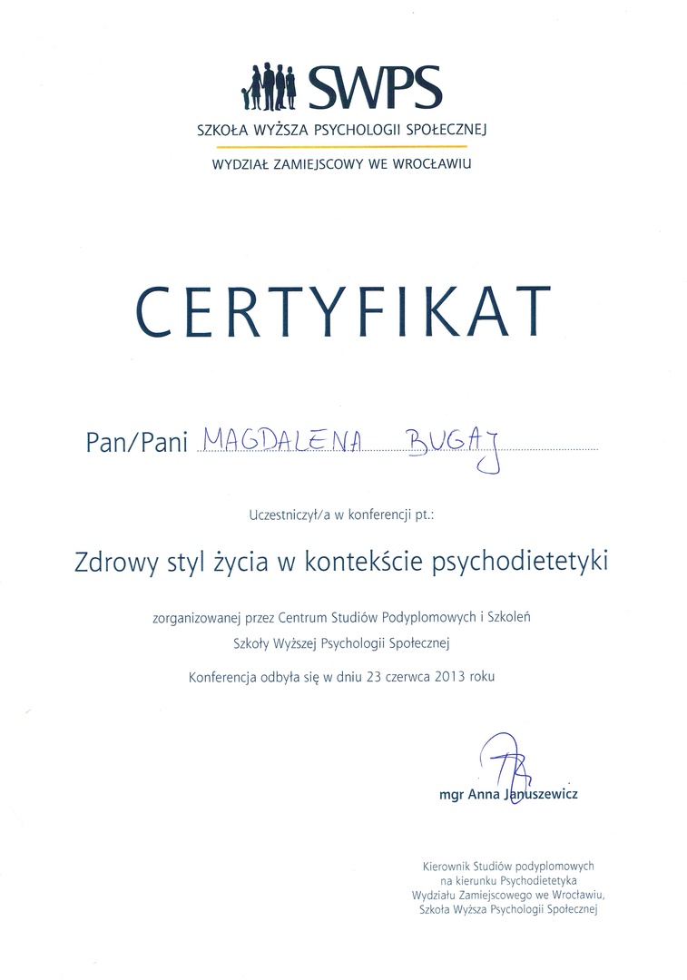 Polecam panią Magdę jako dietetyka. Jej podejście do pacjenta jest profesjonalne i ciepłe. Szczególnie cenne dla mnie jest to, że nauczyłam się racjonalnie patrzeć na potrzeby mojego organizmu i zmienić nawyki żywieniowe. Poprawiło się moje samopoczucie i przede wszystkim zdrowie. Dietę dobiera indywidualnie do potrzeb zdrowotnych i preferencji żywieniowych..
