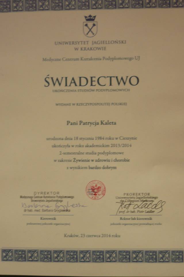 Witajcie, nazywam się Patrycja Kaleta-Połyniak, jestem magistrem Biologii i Dietetykiem. Od lat pasjonuję się zdrowym odżywianiem i dietą.
