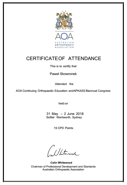 Specjalista z zakresu alloplastyk stawów biodrowych i kolanowych z wykorzystaniem zaawansowanych technologicznie implantów typu preassembled , „krótkich” trzpieni , itp.