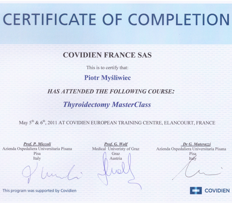 Jestem ogromnie wdzięczna , panu Profesorowi Piotrowi Myśliwcowi za przeprowadzoną u mnie operację tarczycy. Dziękuję za poprowadzenie mnie w przygotowaniu do niej . Wybrałam i zaufałam kompetencjom Profesora , to wysokiej klasy specjalista i bardzo życzliwy człowiek . Dziekuję panu Profesorowi z całego serca. Godny polecenia.