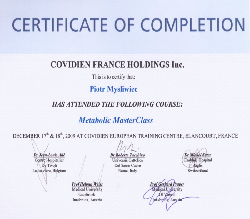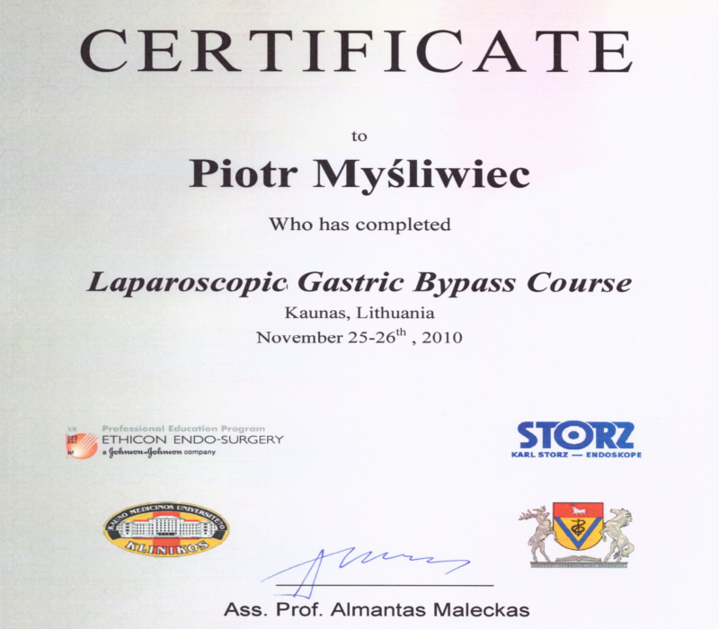 Pan dr hab n. med Piotr Myśliwiec jest świetnym lekarzem. Przeprowadził u mnie operację wyłączenia żołądkowego (gastric bypass). Po 10 miesiącach od operacji schudłem ponad 20 kilogramów, ustąpiły także inne dolegliwości związane z otyłością. Doktor Piotr Myśliwiec jest wybitnym i doświadczonym chirurgiem, który wyróżnia się wysokim profesjonalizmem oraz niebywałą życzliwością wobec swoich pacjentów. Jestem mu wdzięczny za to, że odzyskałem swoje zdrowie. Polecam pana doktora każdemu!