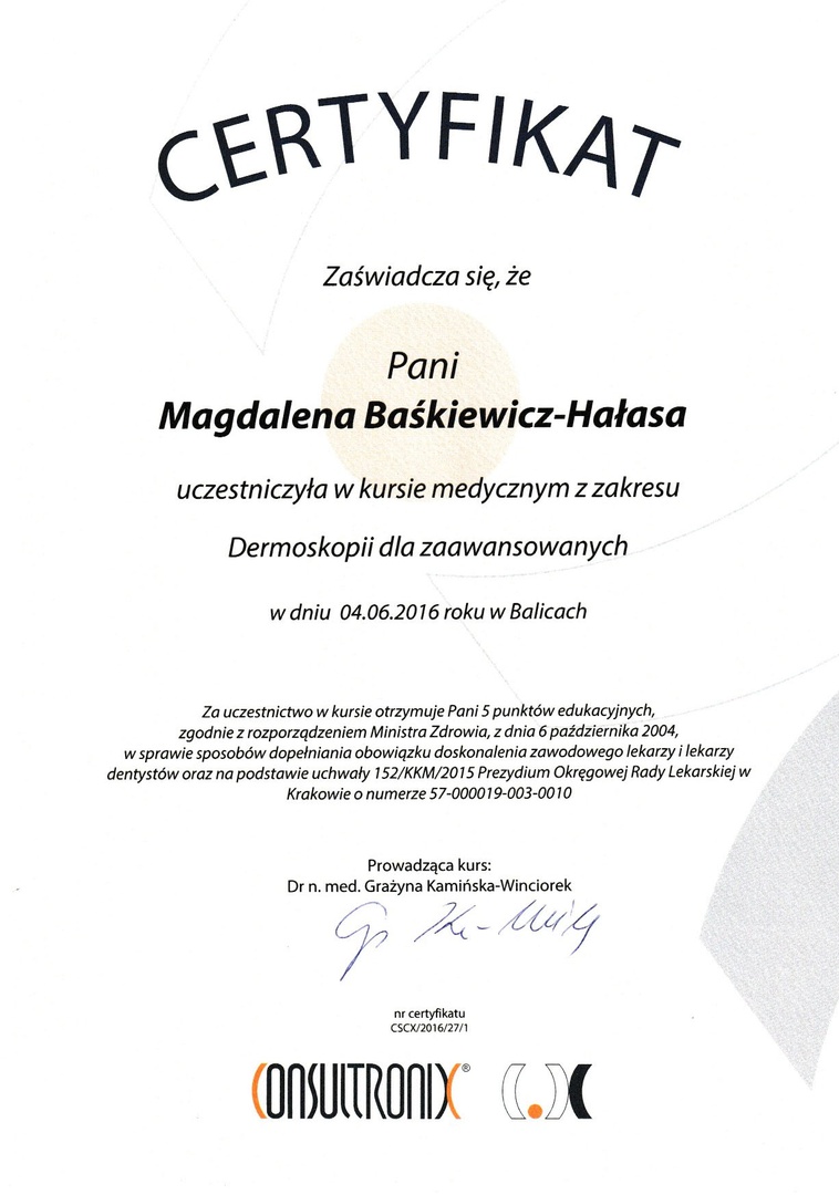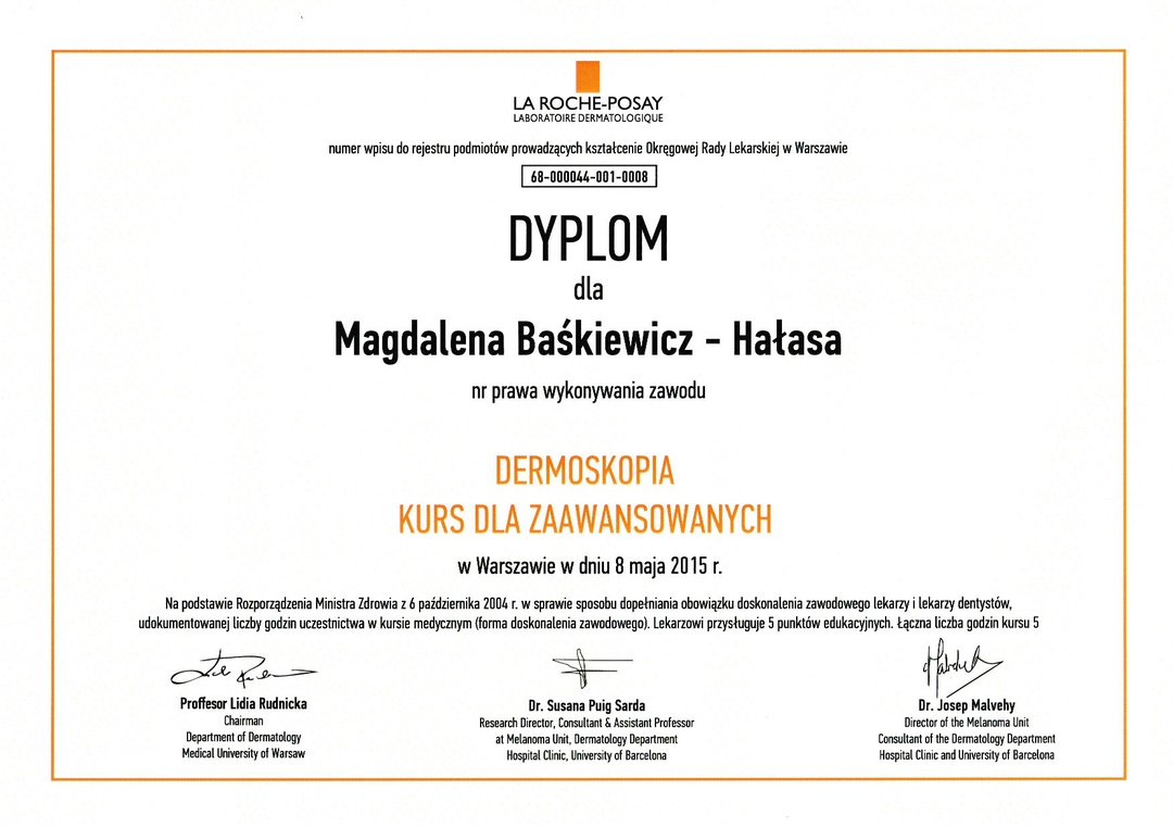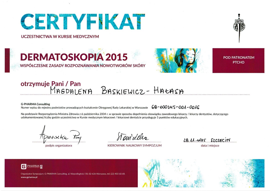 | Badanie dermoskopowe (w tym wideodermoskopia) znamion barwnikowych | |