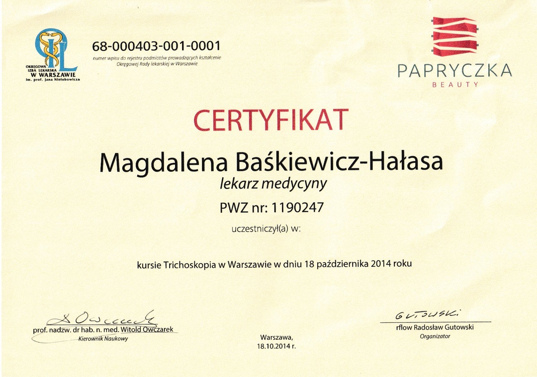 | Trichogram (mikroskopowe badanie korzeni włosów) | |
