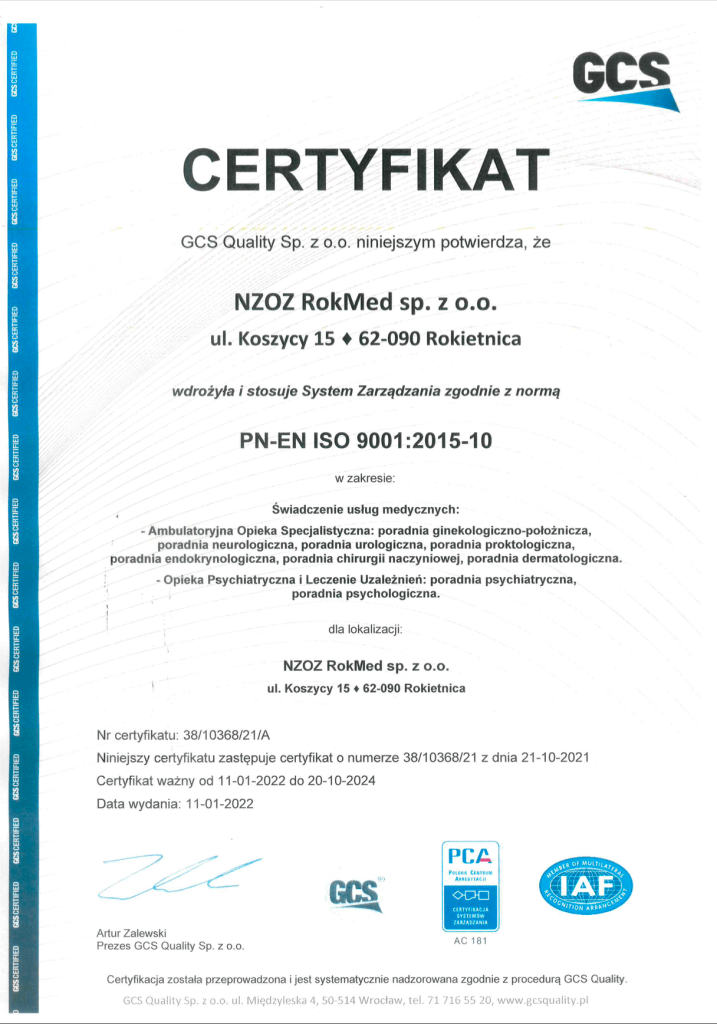 Aktualnie NZOZ Rok Med świadczy usługi w zakresie: