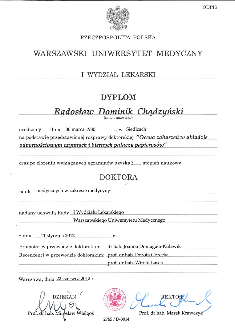 Jestem specjalistą chorób wewnętrznych, obecnie jestem w trakcie szkolenia specjalizacyjnego z kardiologii.