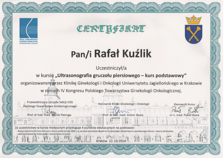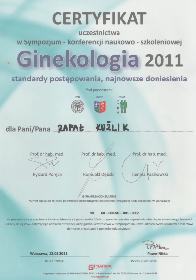 Jestem specjalistą ginekologii i położnictwa oraz ginekologii estetycznej z ponad dwudziestoletnim doświadczeniem zawodowym.W 1996r. ukończyłem Akademię Medyczną w Warszawie na kierunku lekarskim. Po obowiązkowym stażu podyplomowym rozpocząłem w styczniu 1997 roku specjalizację z ginekologii i położnictwa w Klinice Położnictwa i Ginekologii II Wydziału Lekarskiego Akademii Medycznej w Warszawie. Pracowałem równolegle jako lekarz w Ratownictwie Medycznym, co wzbogaciło znacznie moje umiejętności i kompetencje z zakresu szybkiej interwencji i diagnozy oraz zarządzania zespołem ratowniczym. Zgodnie z harmonogramem procesu specjalizacyjnego w roku 2000 zdałem egzamin specjalizacyjny I stopnia, a 4 lata później ukończyłem drugi etap szkolenia, żeby uzyskać tytuł specjalisty w dziedzinie położnictwa i ginekologii.Po zakończeniu procesu specjalizacyjnego rozpocząłem studia doktoranckie, zakończone obroną pracy doktorskiej w macierzystej uczelni w roku 2011.