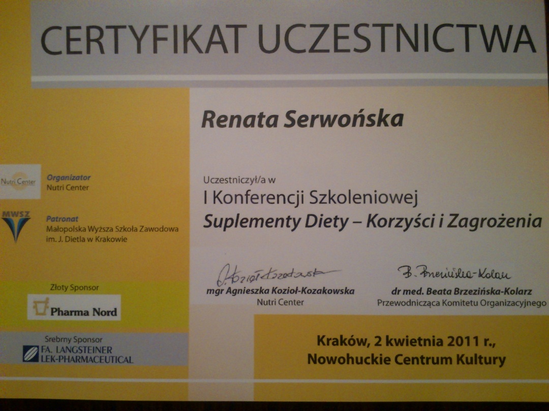 mgr Renata Przybyłowicz (Serwońska) – dietetyk. Absolwentka dietetyki, Wydziału Humanistyki i Zdrowia, Małopolskiej Wyższej Szkoły w Krakowie oraz Akademii Wychowania …