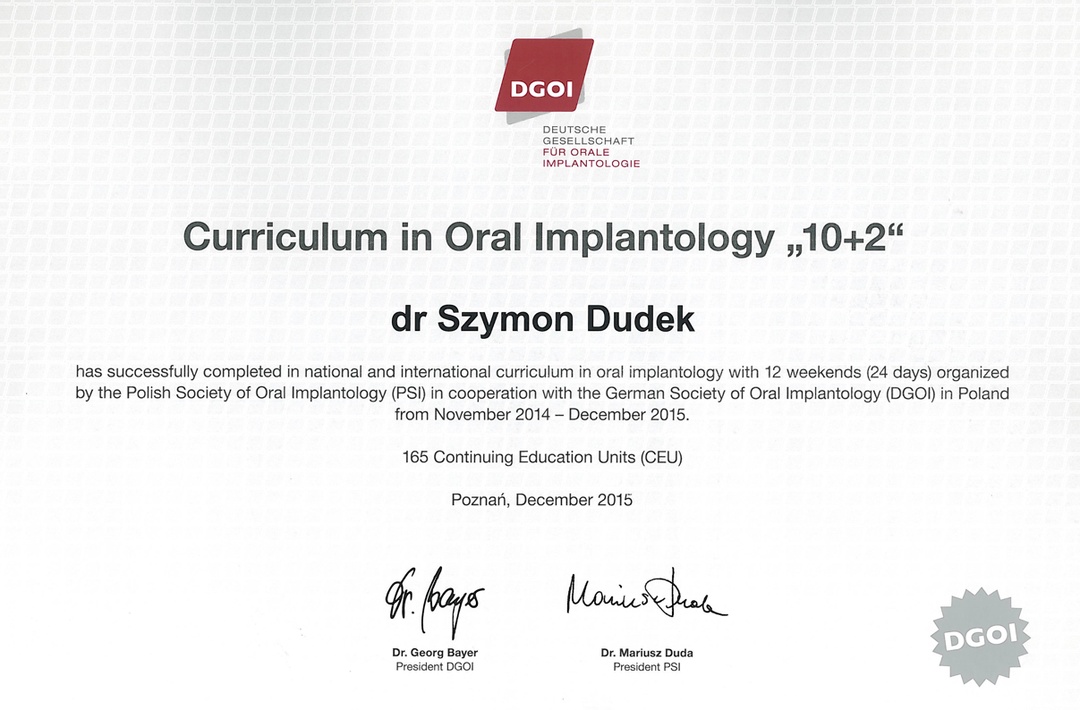 W swojej pracy szczególnie interesuje się implantologią, protetyką i endodoncją. Rozwija się zawodowo poprzez udział w licznych krajowych i międzynarodowych szkoleniach, kursach i kongresach. Jest członkiem Polskiego Towarzystwa Implantologicznego oraz międzynarodowych organizacji : ICOI (najstarsza i największa organizacja zrzeszająca implantologów z całego świata) oraz DGOI. W roku 2017 po zdaniu egzaminu przed międzynarodowa komisją uzyskał tytuł lekarza implantologa.