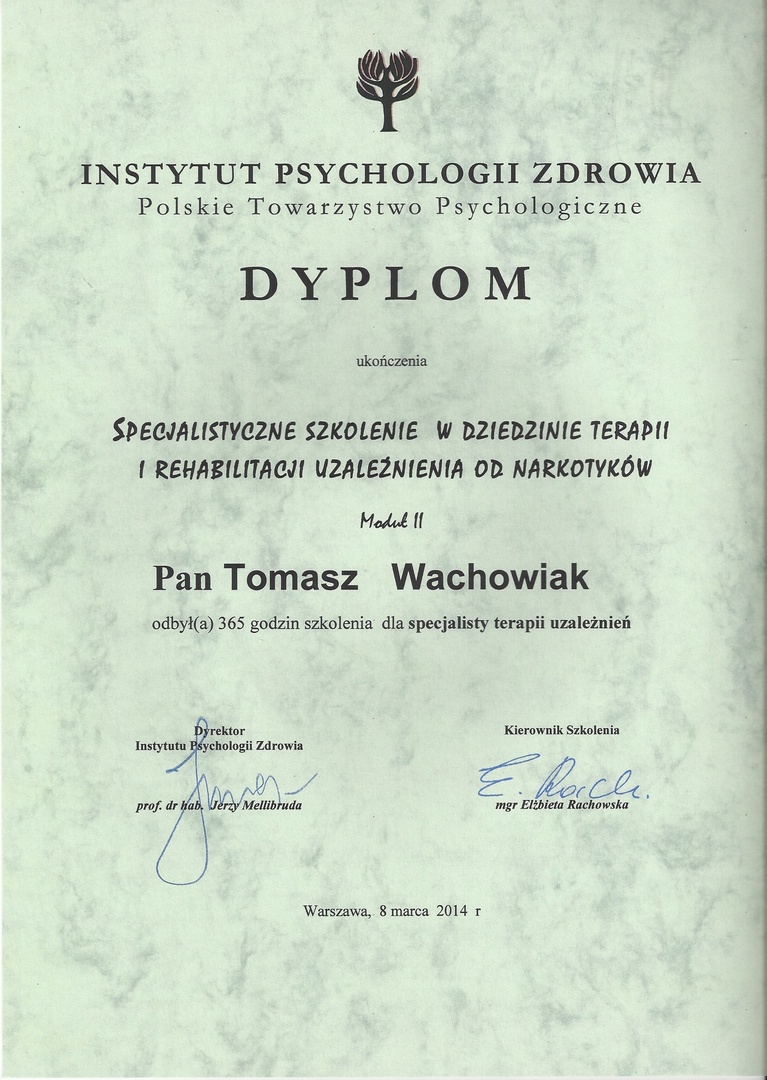 Certyfikowany psychoterapeuta | Specjalista psychoterapii uzależnień